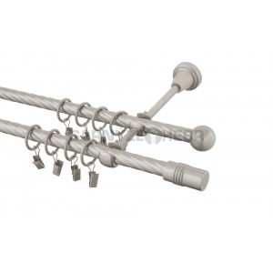 Garnýž 2,4m kroucená kovová dvouřadá délka tyče, barva chrom mat. Kovová garnýž s koncovkou Cylinder.