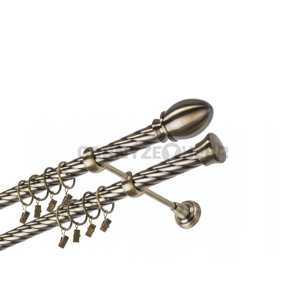 Garnýž kovová 340 cm dvouřadá - dvojitá 25/25 kroucená Belluno Mosaz