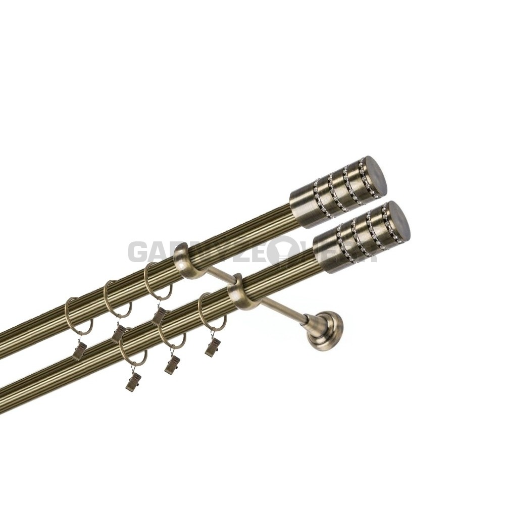 Garnýž kovová 380 cm dvouřadá - dvojitá 25/25 rýhovaná Cylinder crystal double Mosaz