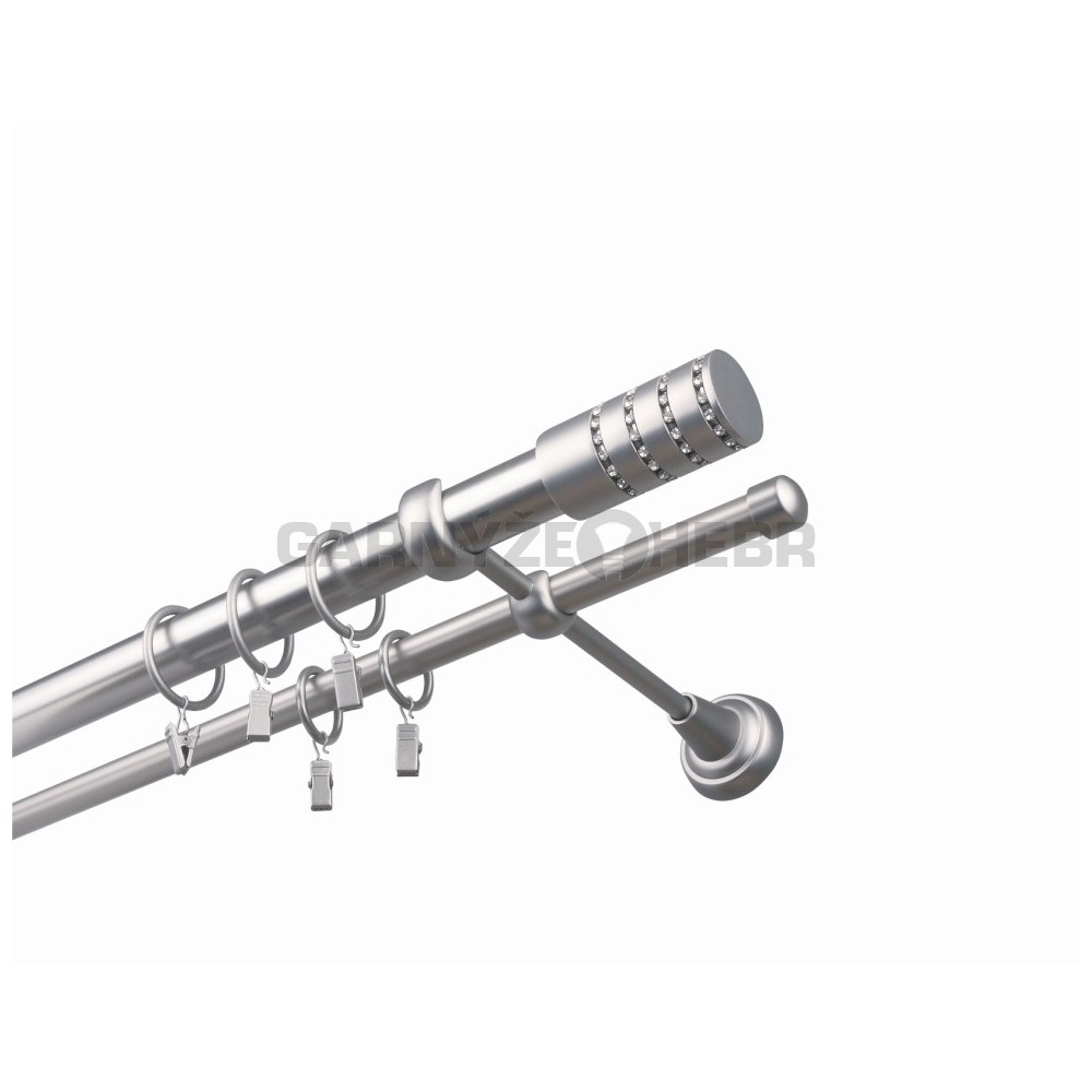 Garnýž kovová 1,3m dvouřadá - dvojitá 25 Cylinder crystal Satina