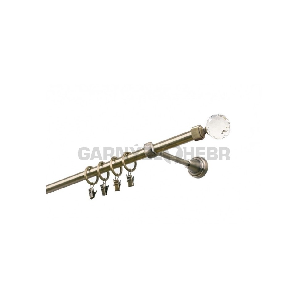 Garnýž kovová 4m jednořadá 16 Koule crystal mosaz / záclonová tyč