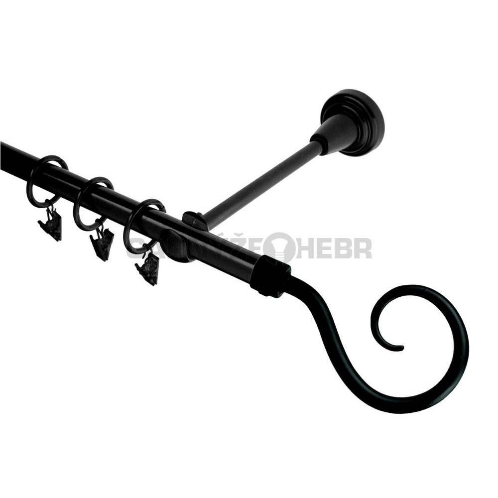 Garnýž kovová 2m jednořadá 16 Hák černá / záclonová tyč