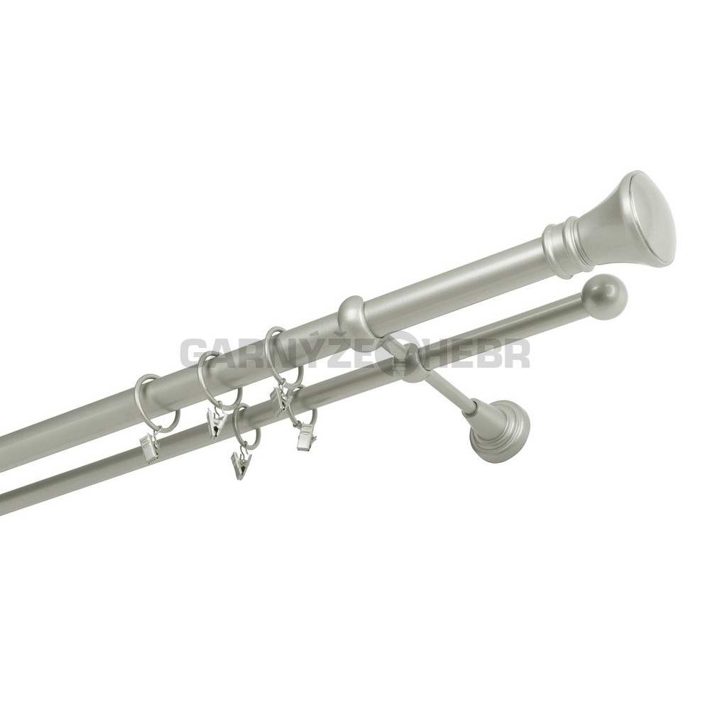 Garnýž kovová 220 cm dvouřadá - dvojitá 25 žezlo stříbrná mat