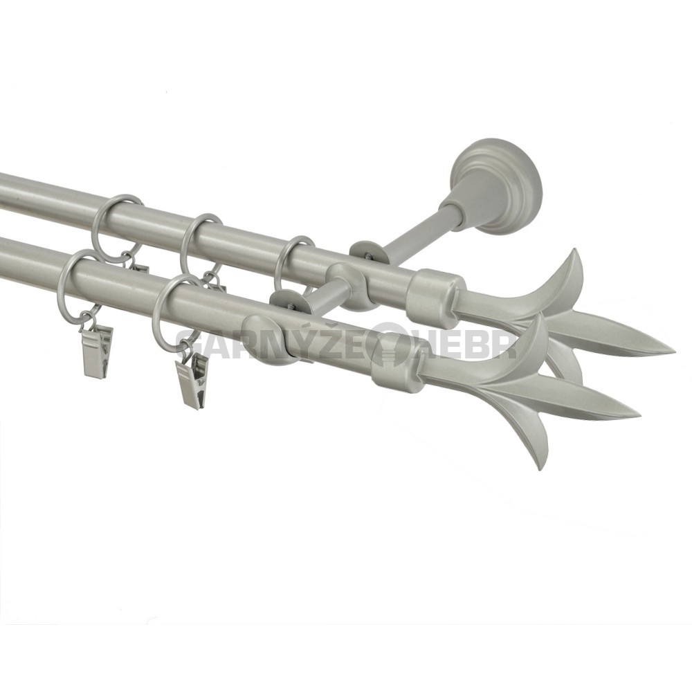 Garnýže kovová 300 cm dvouřadá - dvojitá 16 lilie double matná stříbrná