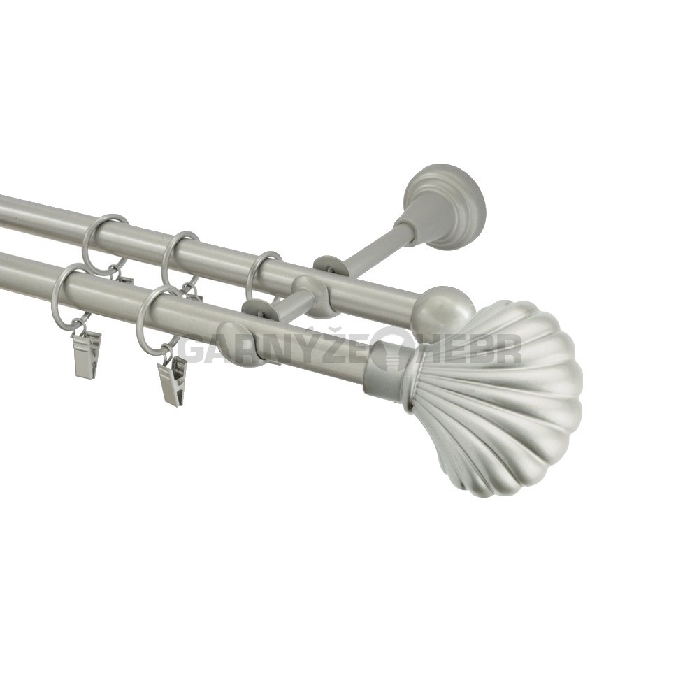Garnýž kovová 380 cm dvouřadá - dvojitá 16 mušle matná stříbrná
