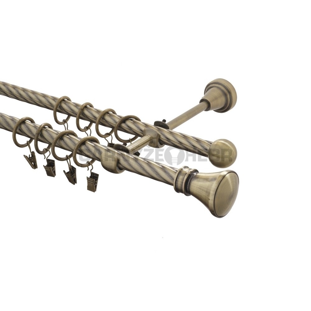 Garnýž kovová 1,7m kroucená dvouřadá - dvojitá 16 Koloseo mosaz
