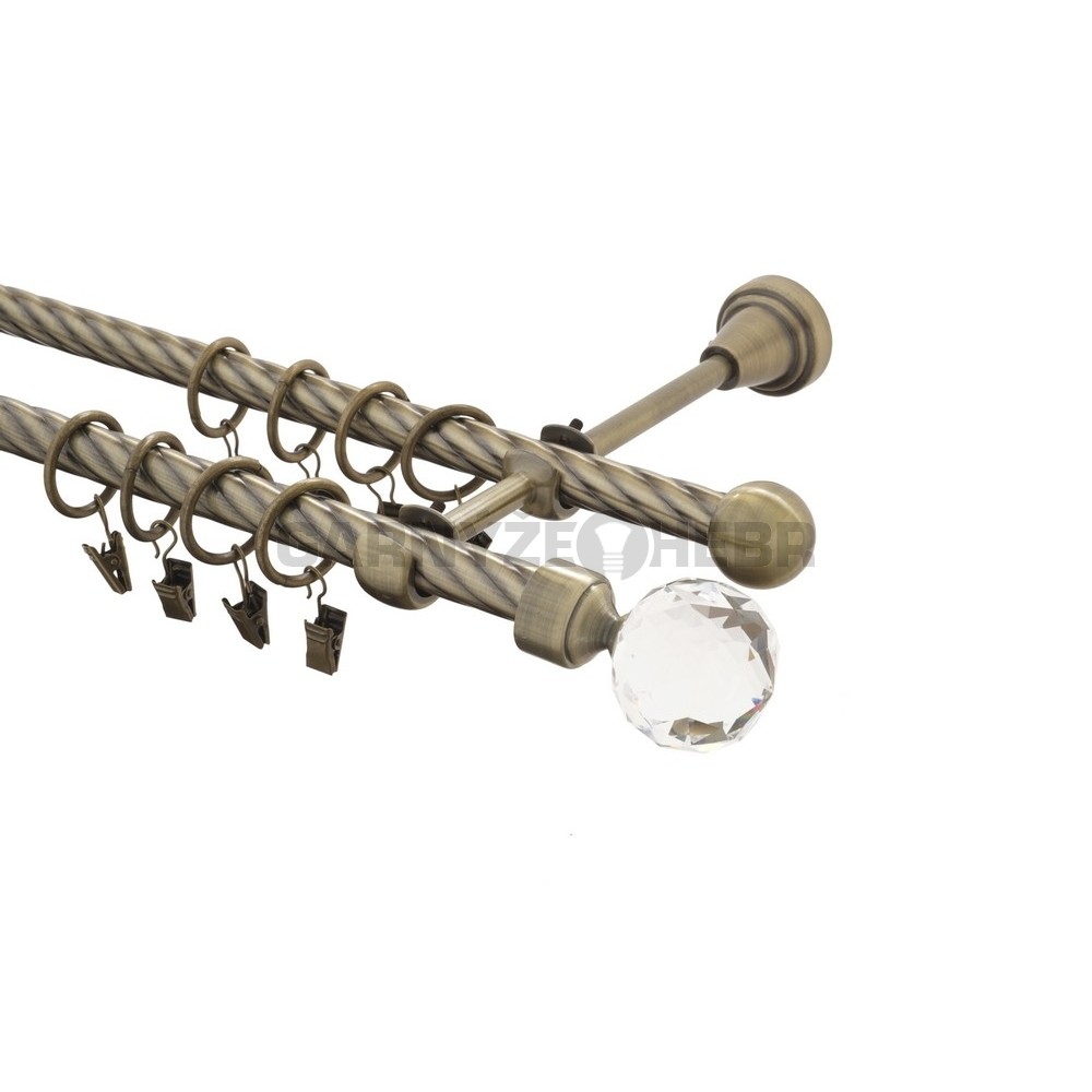 Garnýž kovová 1,2m kroucená dvouřadá - dvojitá 16 Koule crystal mosaz