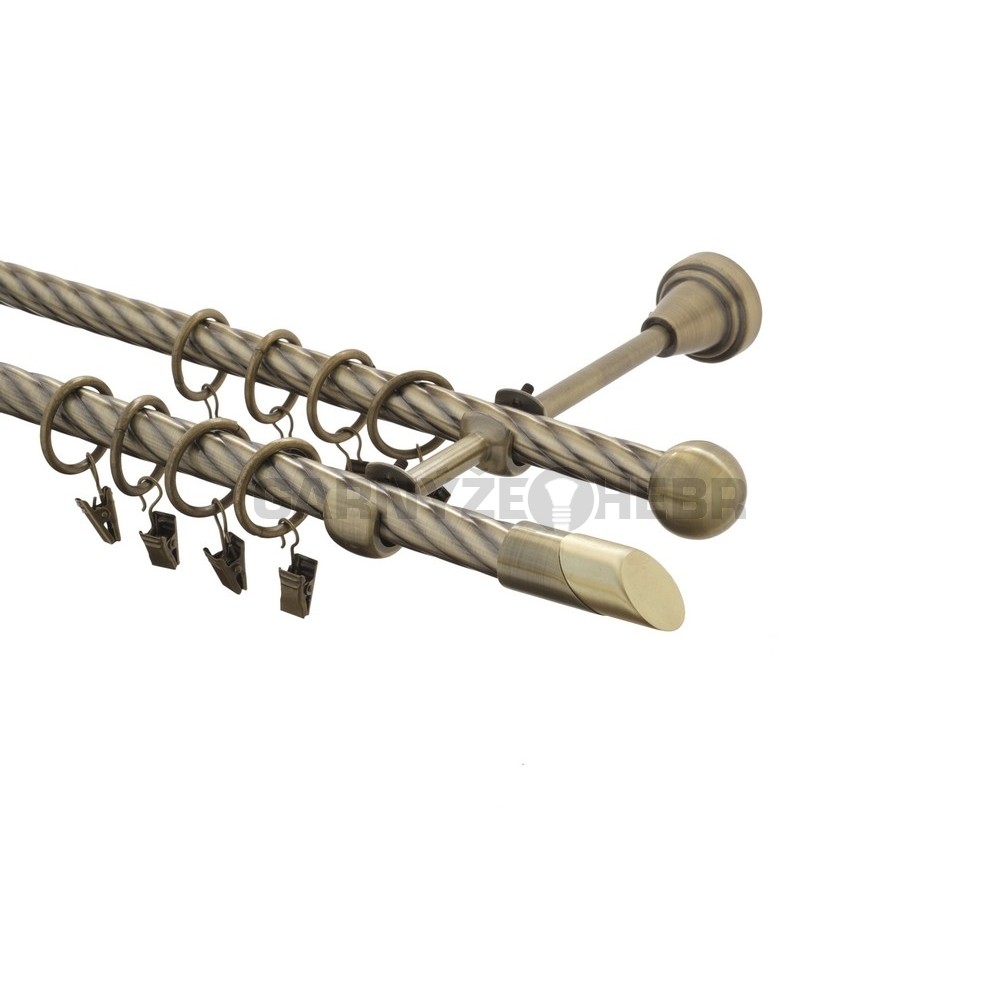 Garnýž kovová 110 cm kroucená dvouřadá - dvojitá 16 Piza II mosaz