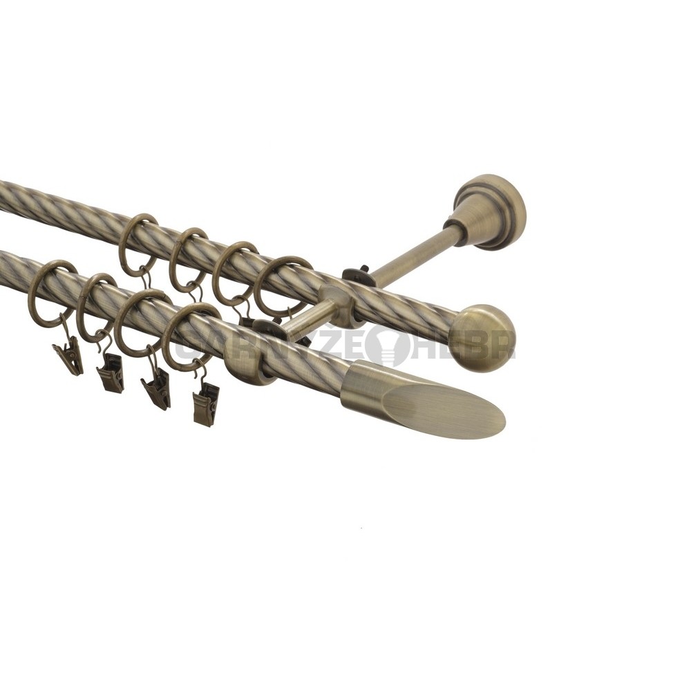 Garnýž kovová 220 cm kroucená dvouřadá - dvojitá 16 Piza mosaz