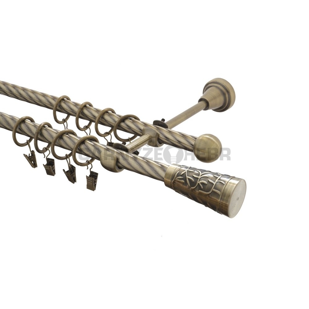 Garnýž kovová 150 cm kroucená dvouřadá - dvojitá 16 Sevilla mosaz