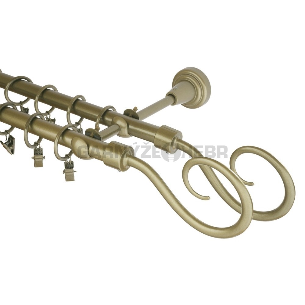 Garnýž kovová 130 cm dvouřadá - dvojitá 16 hák double, zlatá antik