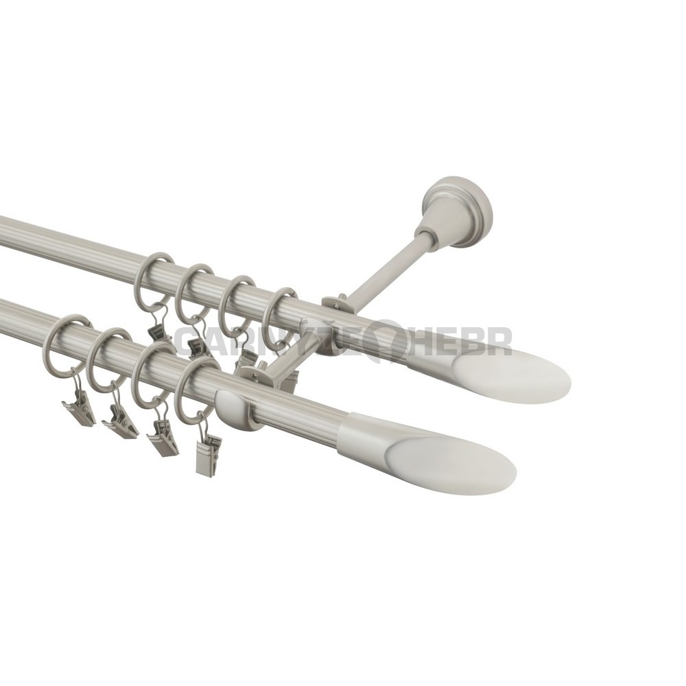 Garnýž kovová rýhovaná dvouřadá 4m délka tyče, barva chrom mat. Kovová garnýž s koncovkou Piza double.