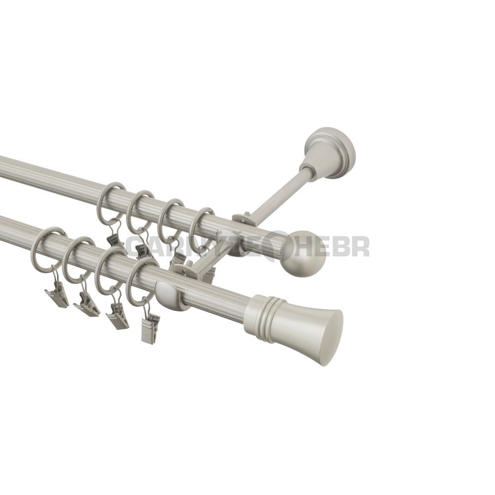 Garnýž kovová rýhovaná dvouřadá 140 cm délka tyče, barva chrom mat. Kovová garnýž s koncovkou Capri.