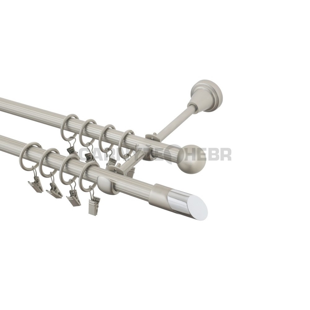 Garnýž kovová rýhovaná dvouřadá 1,3m délka tyče, barva chrom mat. Kovová garnýž s koncovkou Piza II.