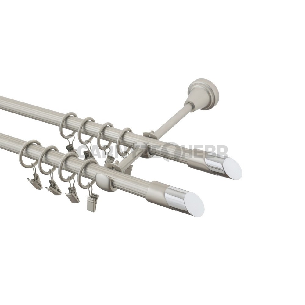 Garnýž kovová rýhovaná dvouřadá 1,7m délka tyče, barva chrom mat. Kovová garnýž s koncovkou Piza II double.