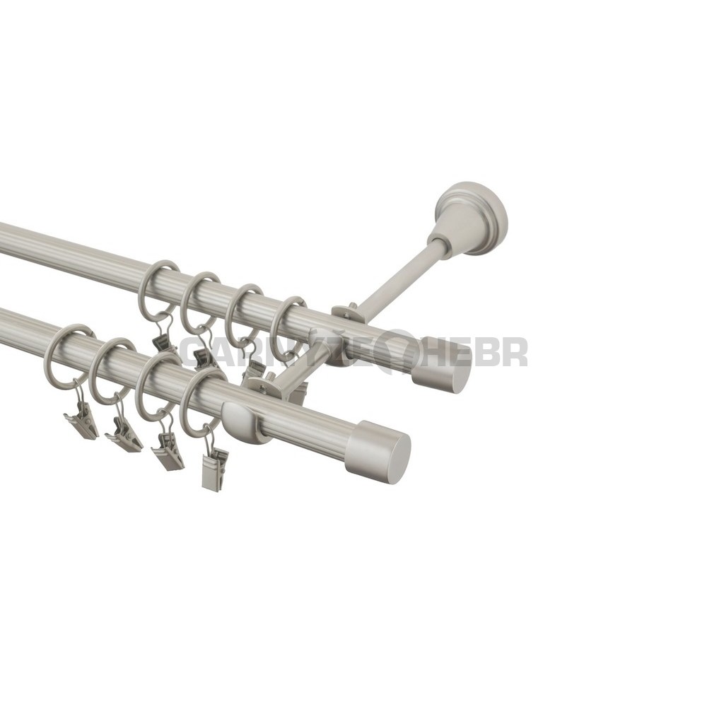 Garnýž kovová rýhovaná dvouřadá 4,8m délka tyče, barva chrom mat. Kovová garnýž s koncovkou Válec double.