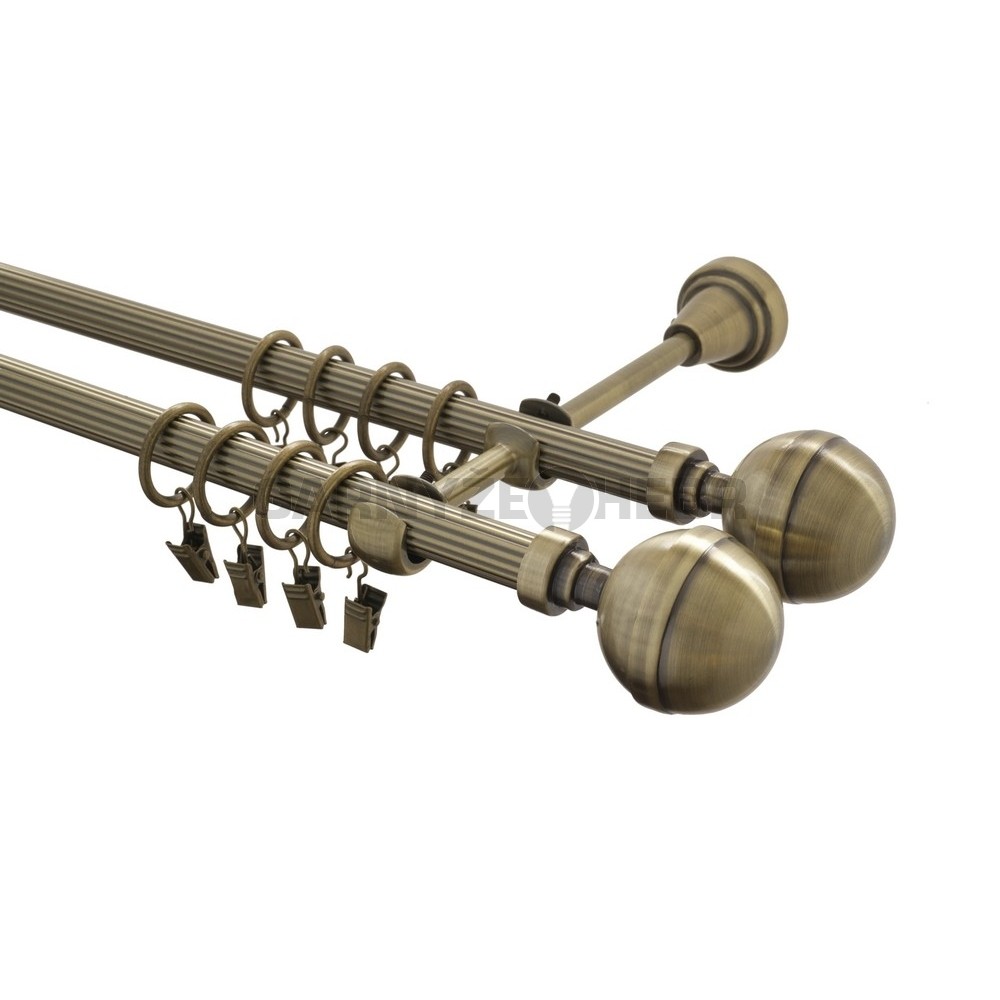 Garnýž kovová rýhovaná dvouřadá 1,5m délka tyče, barva mosaz Kovová garnýž s koncovkou Kalisto double.