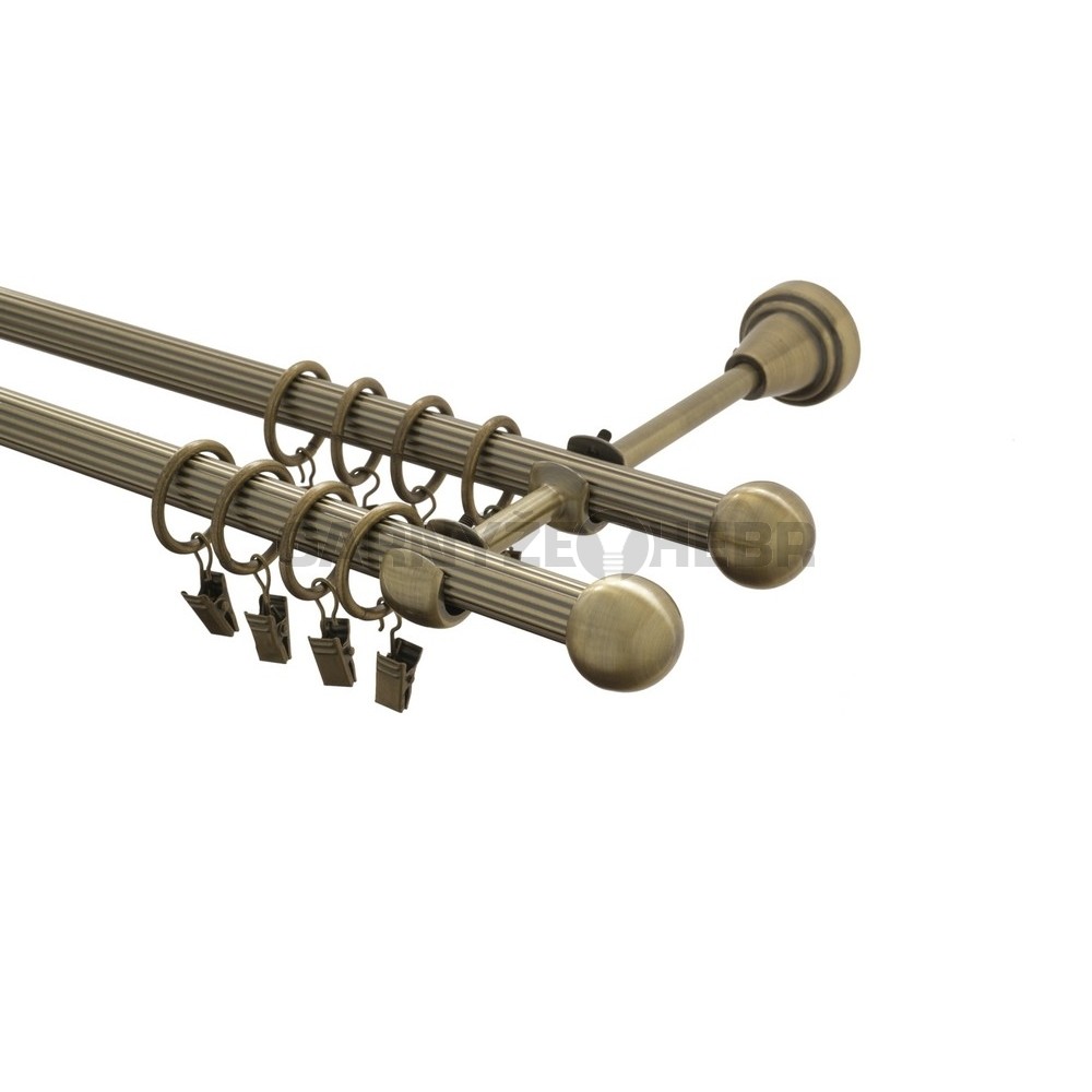 Garnýž kovová rýhovaná dvouřadá 2,2m délka tyče, barva mosaz Kovová garnýž s koncovkou Koule.