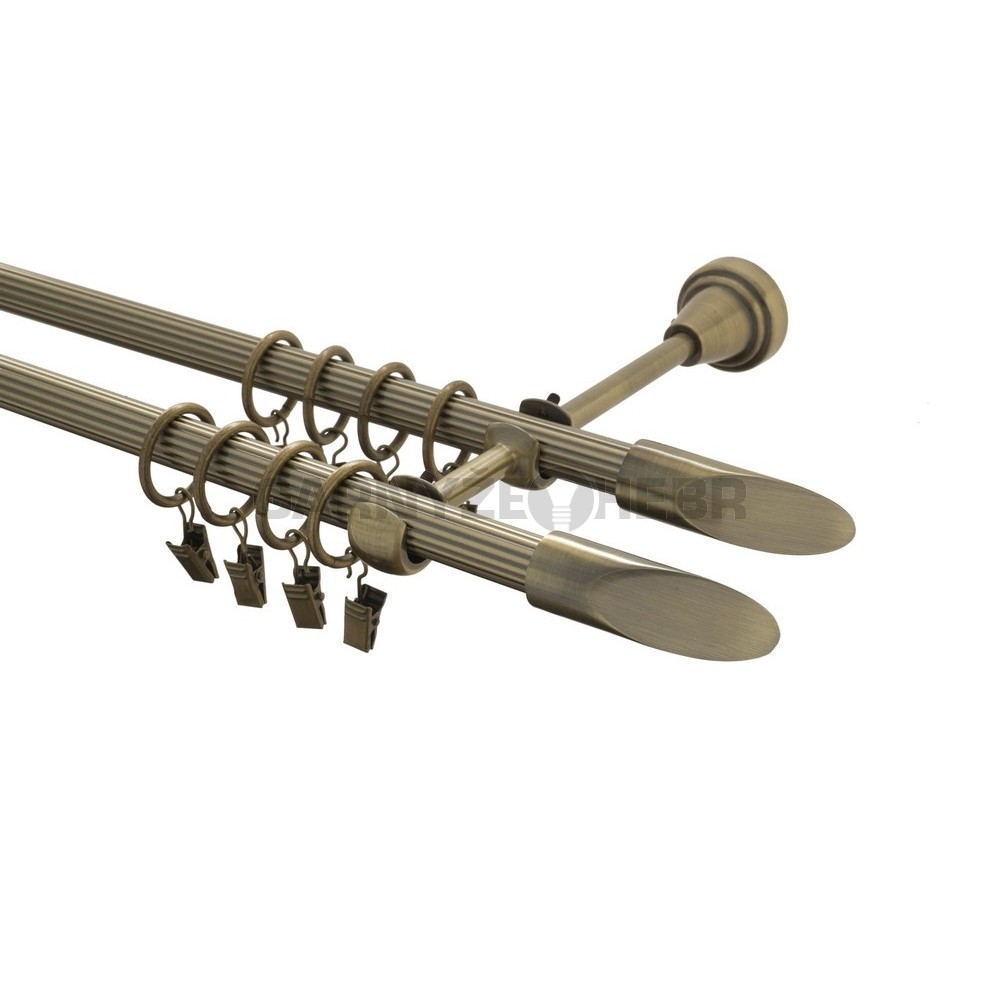 Garnýž kovová rýhovaná dvouřadá 1,5m délka tyče, barva mosaz Kovová garnýž s koncovkou Piza double.