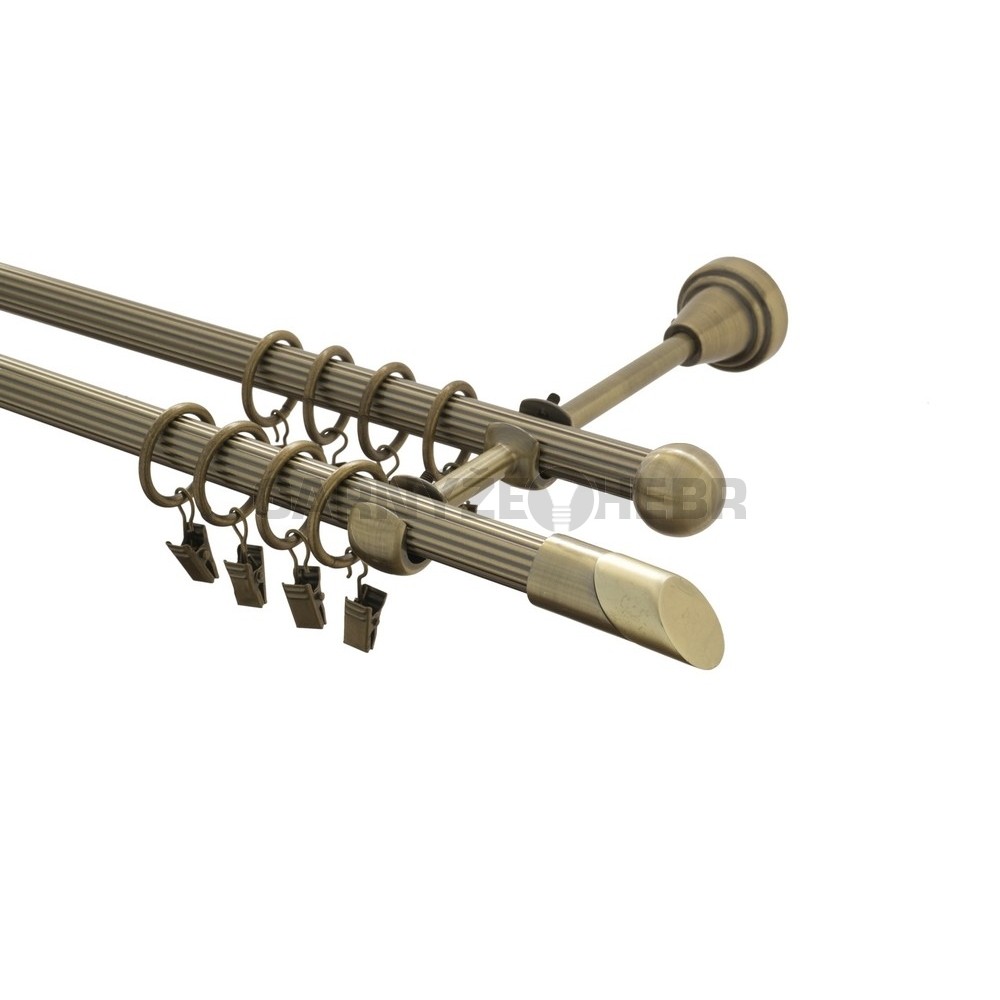 Garnýž kovová rýhovaná dvouřadá 1m délka tyče, barva mosaz Kovová garnýž s koncovkou Piza II.