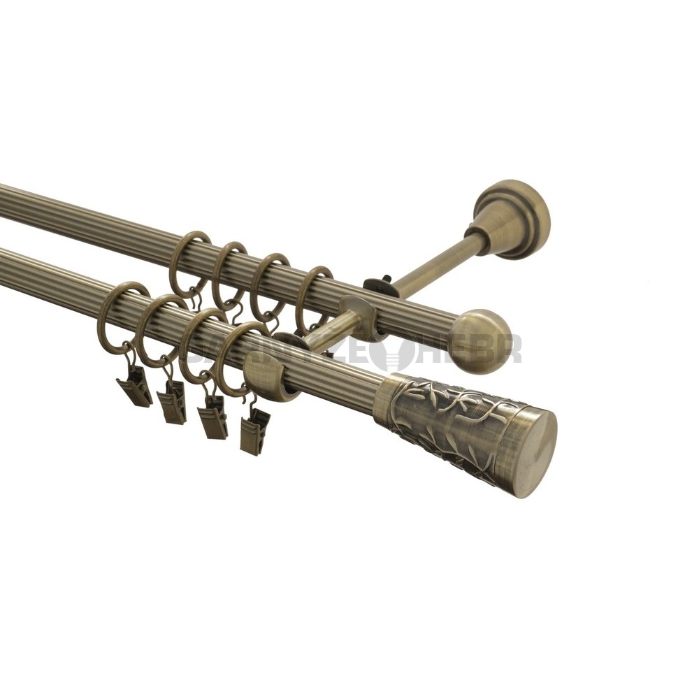 Garnýž kovová rýhovaná dvouřadá 4,8m délka tyče, barva mosaz Kovová garnýž s koncovkou Sevilla.