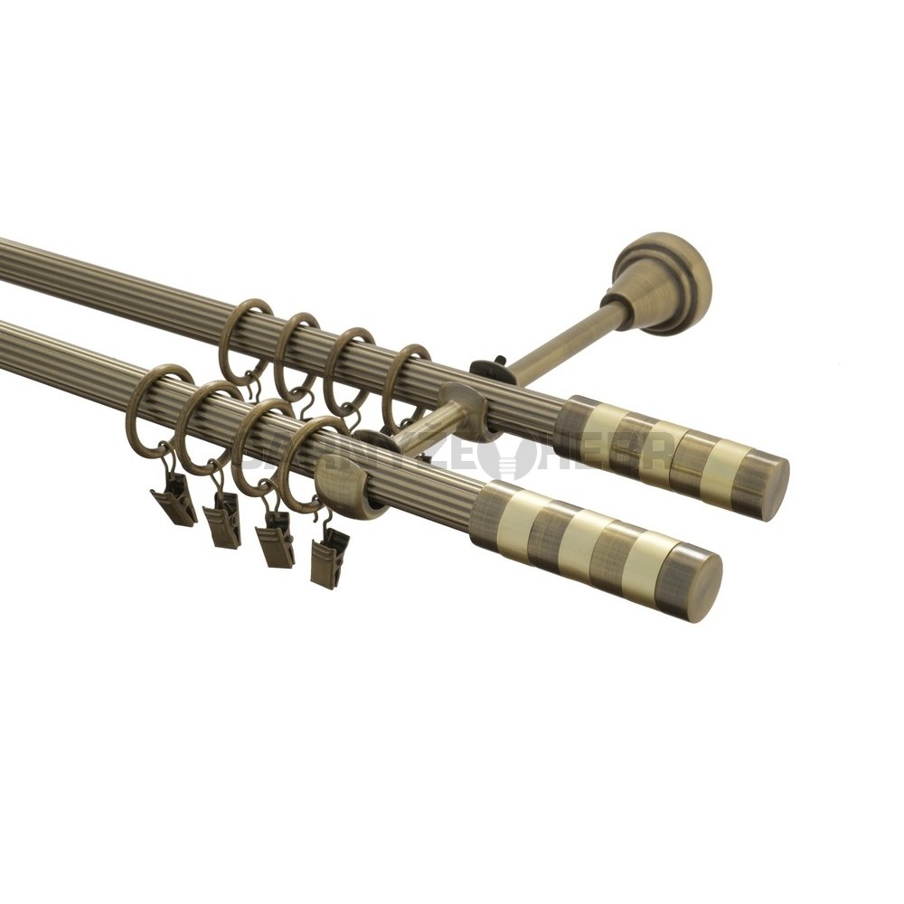 Garnýž kovová rýhovaná dvouřadá 2,1m délka tyče, barva mosaz Kovová garnýž s koncovkou Sigma double.