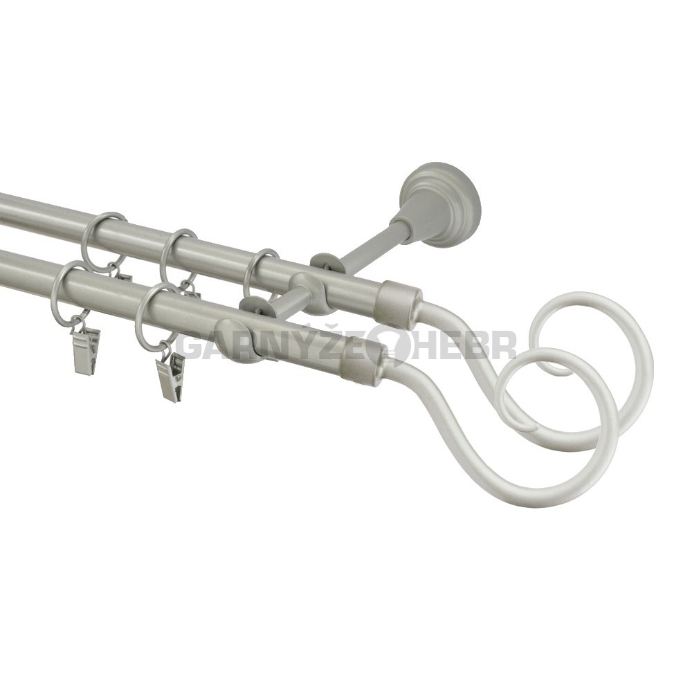 Garnýž kovová 200 cm dvouřadá - dvojitá 16 hák double matná stříbrná