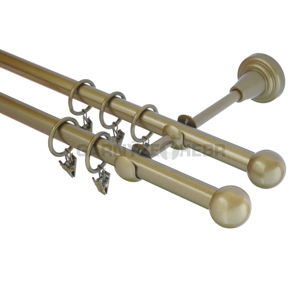 Garnýž kovová 3,8m dvouřadá - dvojitá 16 koule zlatá antik