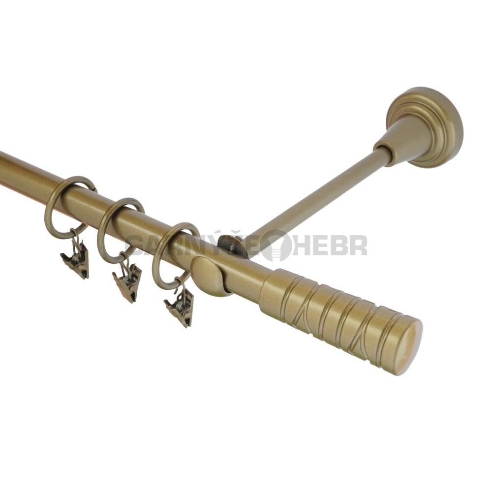 Garnýž kovová 1,3m jednořadá 16 torino zlatá antik / záclonová tyč