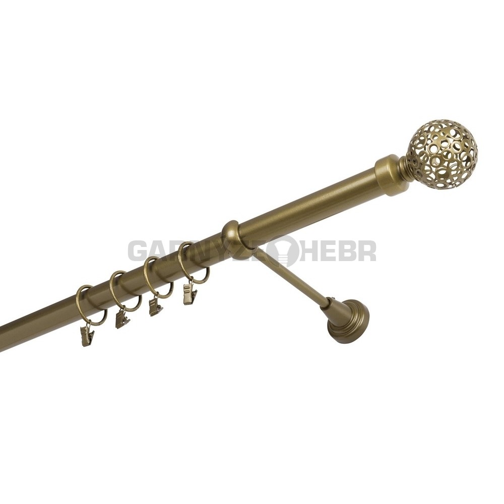 Garnýž kovová 3,4m jednořadá 25 koule retro zlatá antik / záclonová tyč