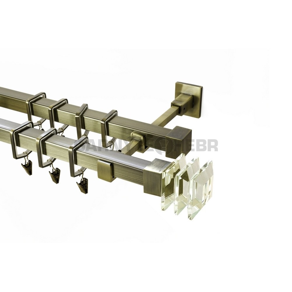 Garnýž kovová 230 cm dvouřadá - dvojitá 20x20 Crystal starozlatá