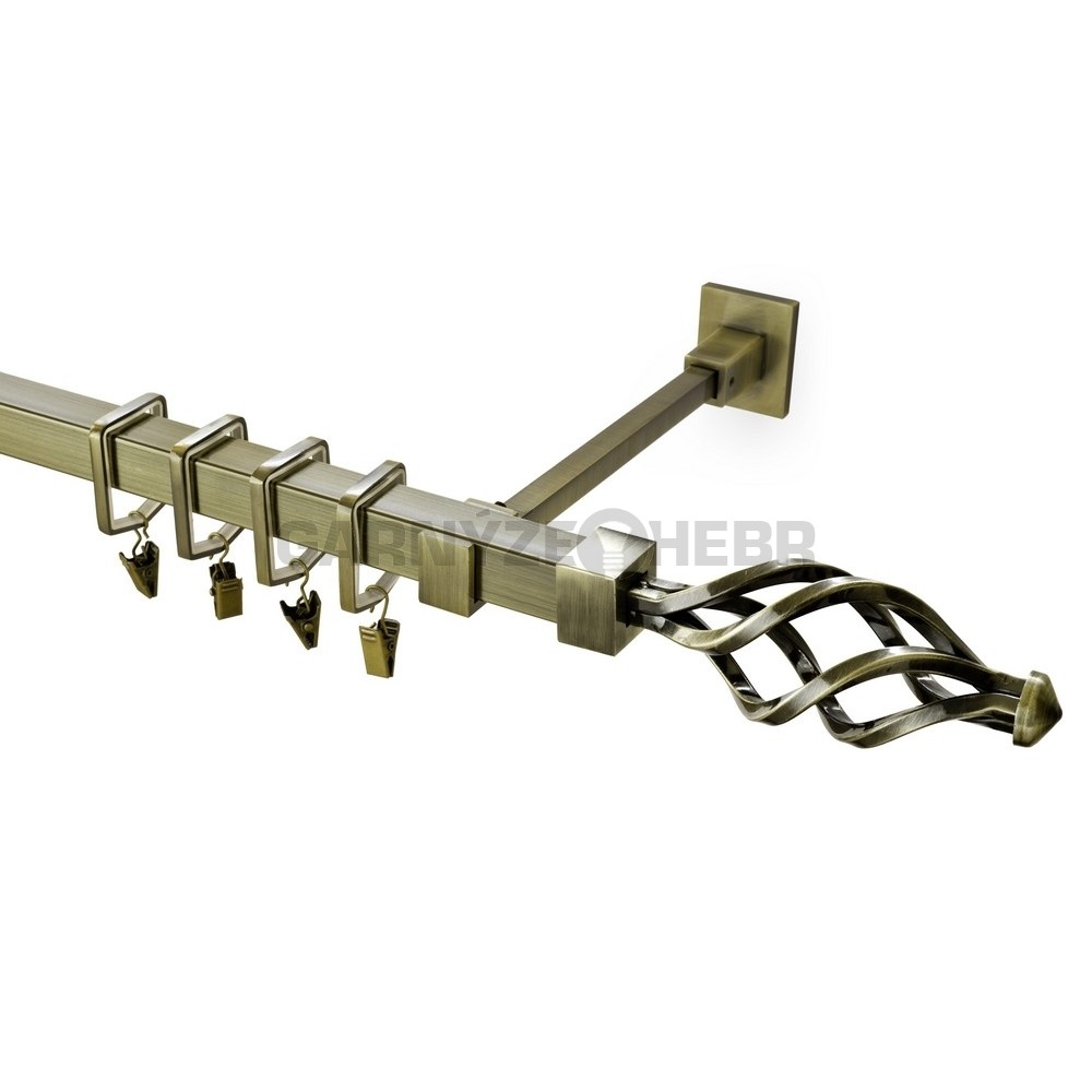 Garnýž kovová 2,4m jednořadá 20x20 Azur starozlatá / záclonová tyč