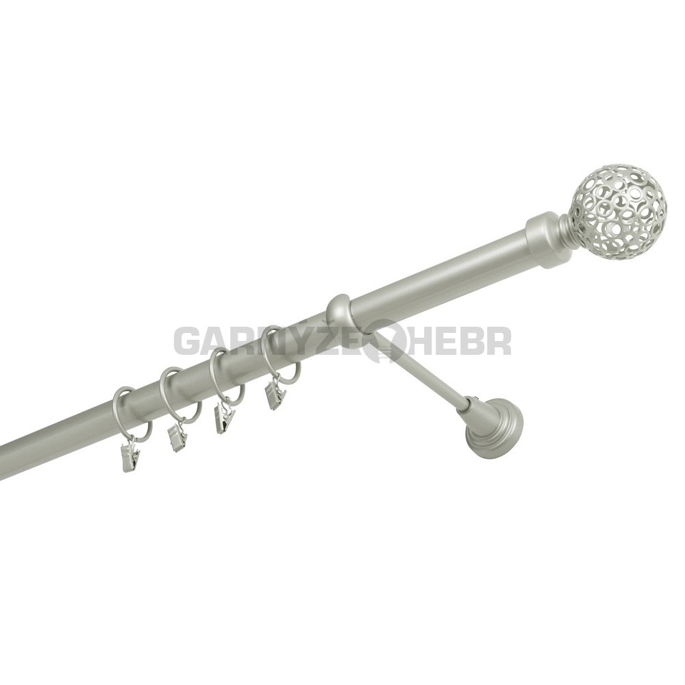 Garnýž kovová 3,8m jednořadá 25 koule retro stříbrná mat / záclonová tyč