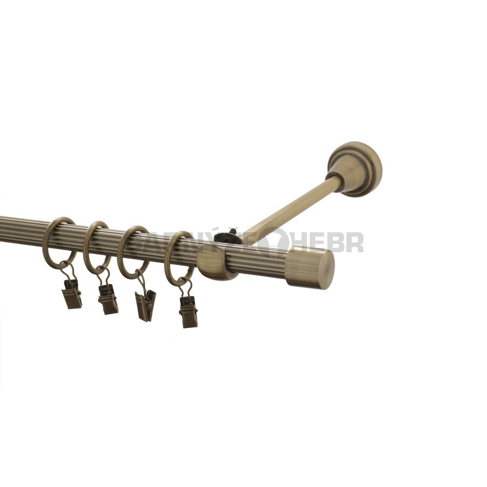 Záclonová tyč kovová rýhovaná 1m délka tyče, barva mosaz s koncovkou Válec.